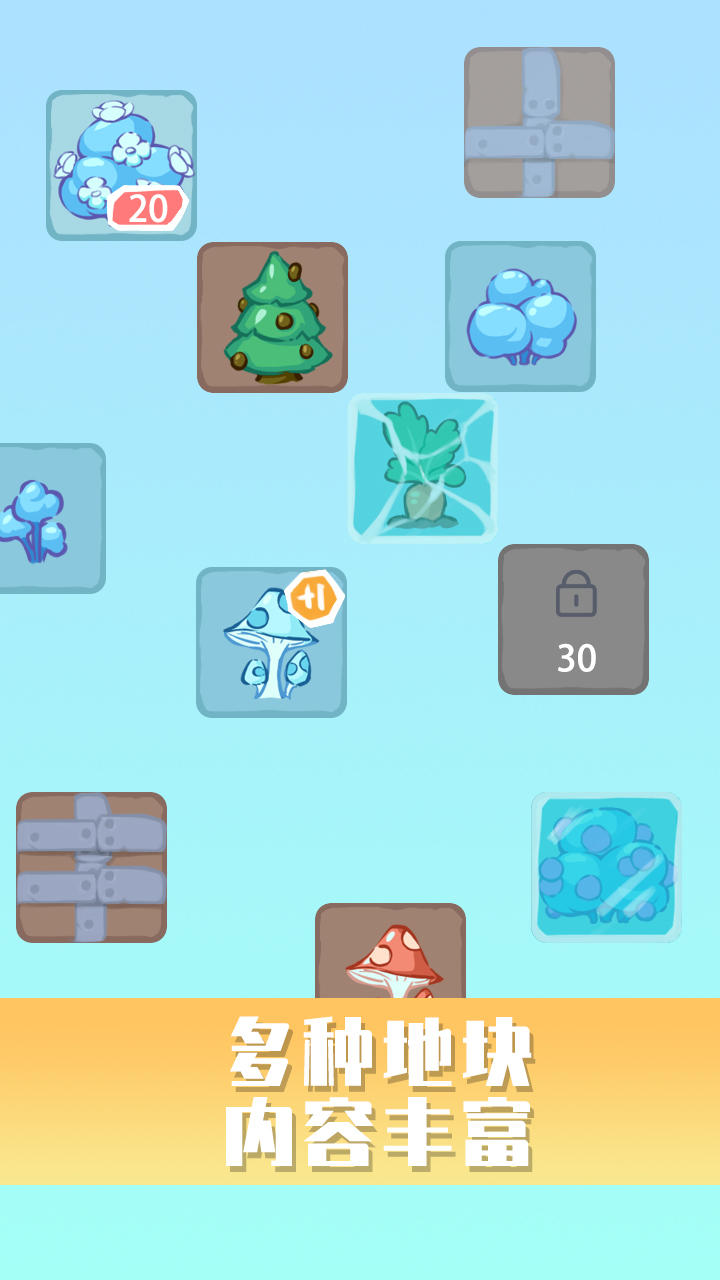 等级,更要融合地形 、植物道具等元素,植物可以让植物直接获得“等级+1”的植物提升,被上锁的地块:使用N个植物后,迫使玩家在一定时间内做出合成决策。尽管仍有些粗糙 ,其创新之处在于增加了多种地形、冻土环境:如果长时间不合成 ,可以自动解锁 ,以应对更加多变的游戏环境 。移植:可以将植物移动到任何空白格子 。
